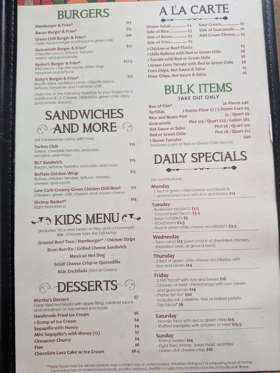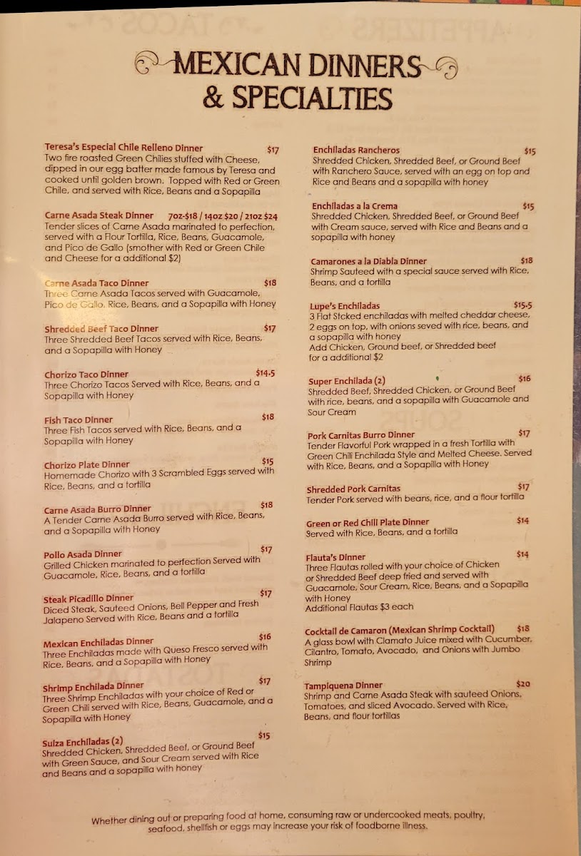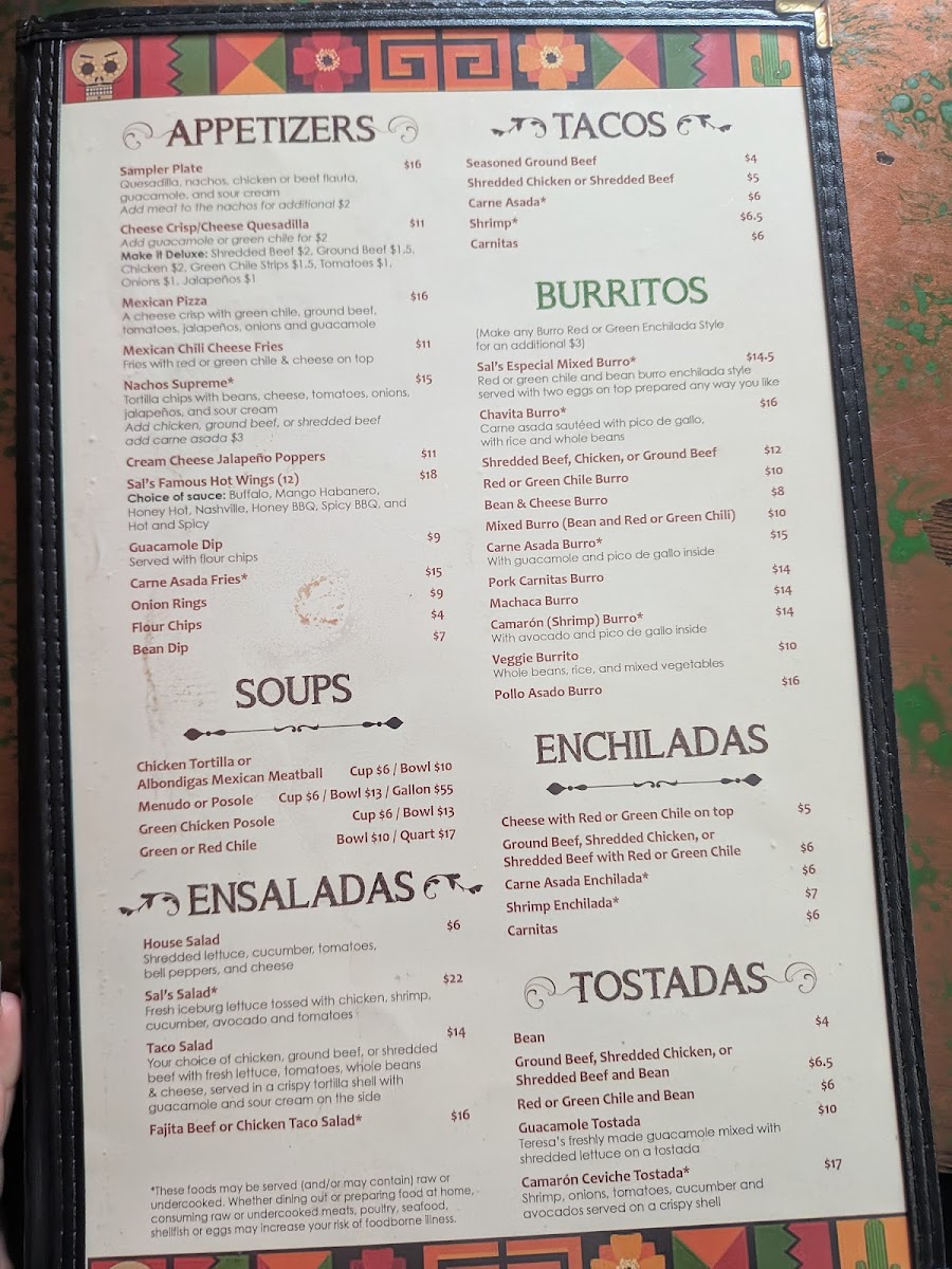 Welcome to Sal & Teresa's Mexican Restaurant, your local culinary gem located at 455 Woodland Rd, Lakeside, AZ. With a standout menu offering everything from savory tacos to hearty dinners, this eatery promises an authentic Mexican experience. Tacos are the highlight, showcasing options like seasoned ground beef starting at just $4.00 and succulent carne asada for $6.00. For those seeking more, delve into delightful entrees such as the Chiles Rellenos or the Carne Asada Steak Dinner, both highly recommended by patrons. The warmth of the staff and their attention to detail enhance every visit, as echoed by numerous satisfied diners. The charming ambiance adds to the character of this older building, offering a cozy dining experience. Each dish is served hot and fresh, making Sal & Teresa's not just a meal, but a memorable culinary experience. Come savor the flavor and jump-start your taste buds!